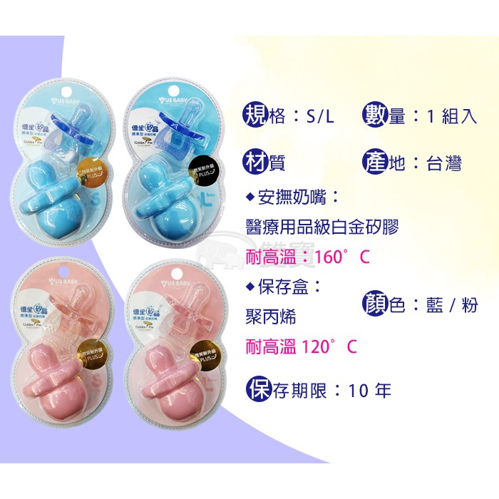 嬰兒棒 US BABY優生 矽晶安撫奶嘴 微笑升級版S L 標準型 藍 粉 醫療級 白金矽膠 耐高溫 寶寶奶嘴