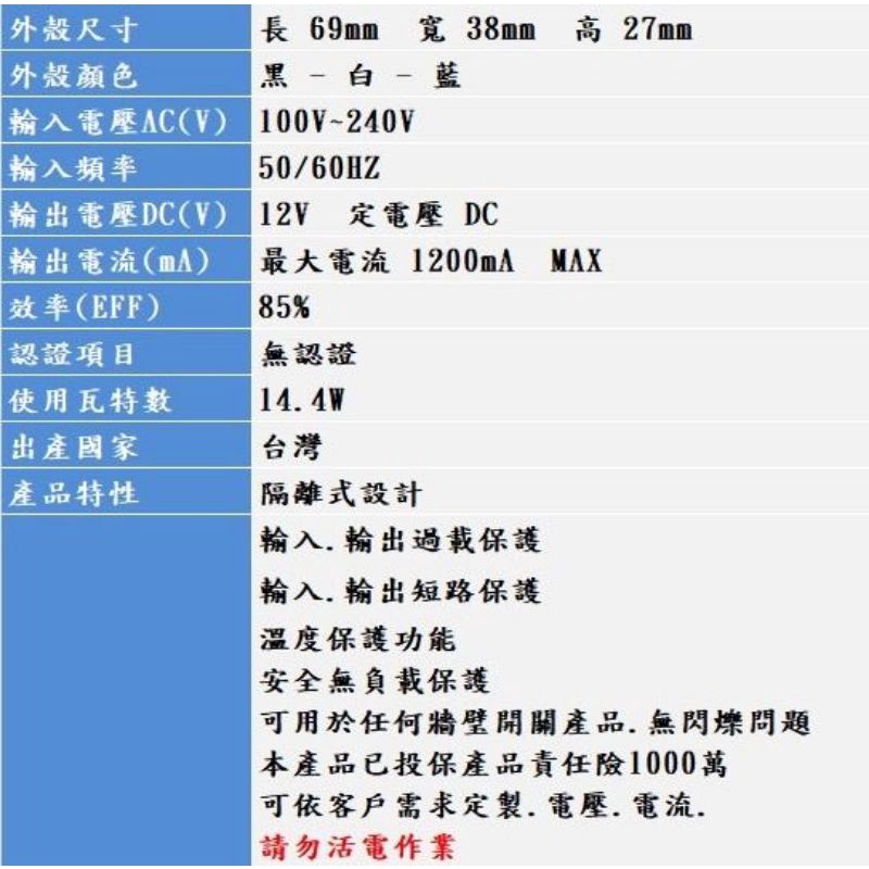 Ac100-240v轉Dc12v 1200mA燈具變壓器(技術性商品,請先詢問再下單)