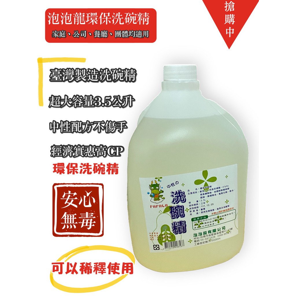 【台灣公司貨 附發票可統編 泡泡龍】洗碗精 洗碗精3800cc 濃縮洗碗精 沙拉脫 量販 餐廳 學校 餐盤 環保洗碗精