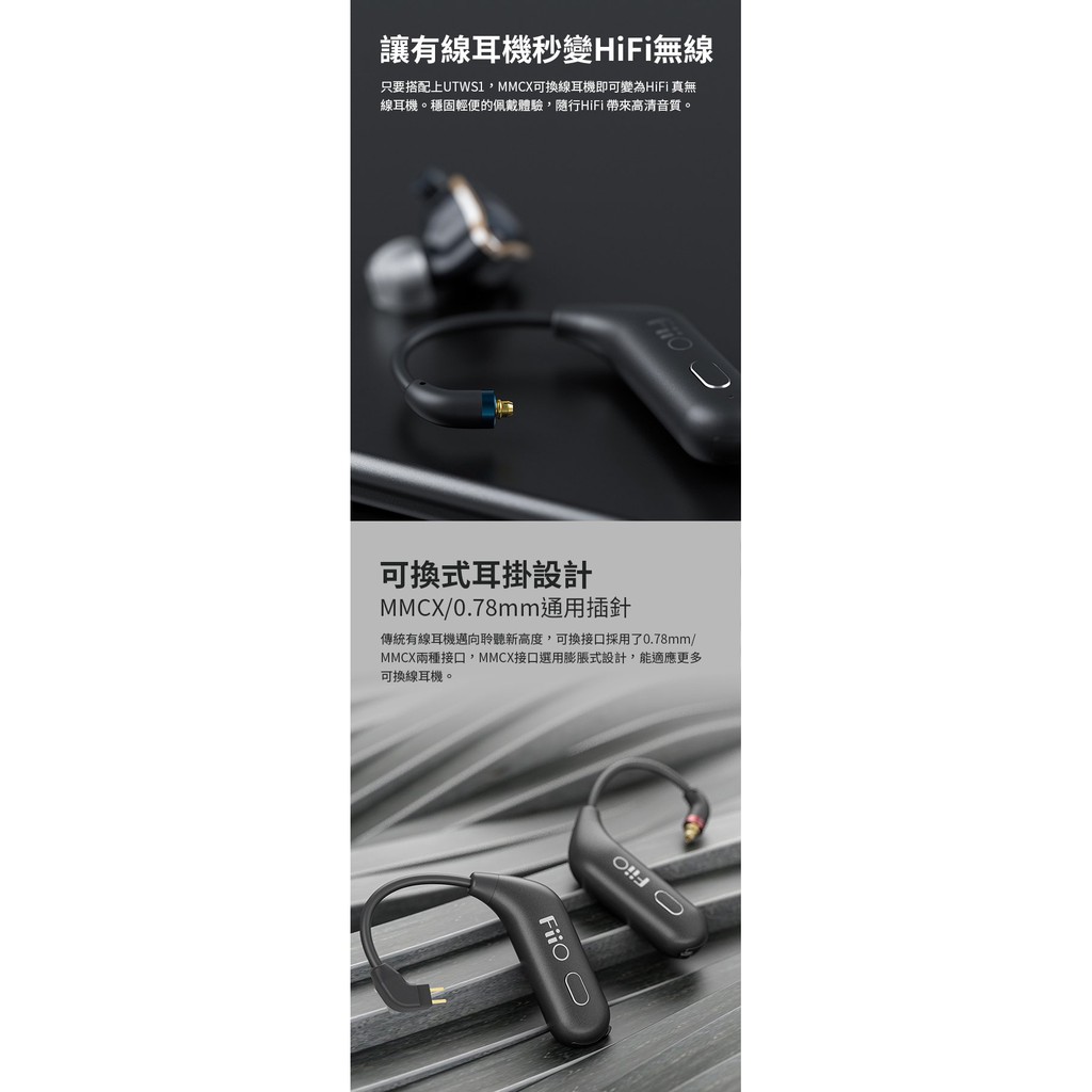 【 FiiO UTWS1 】真無線藍牙耳掛式升級線 藍牙5.0/0.78mm通用插針接口