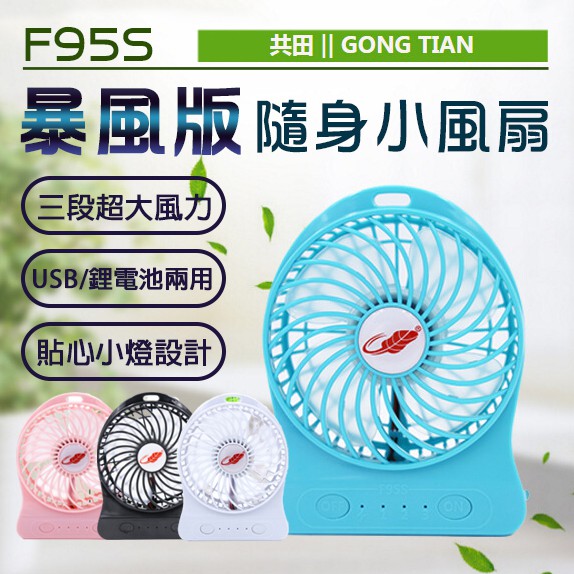 【台灣現貨】共田 升级經典款 F95S 暴風版 隨身小風扇 USB/鋰電池兩用 風力超強 迷你電扇 隨身扇 風扇