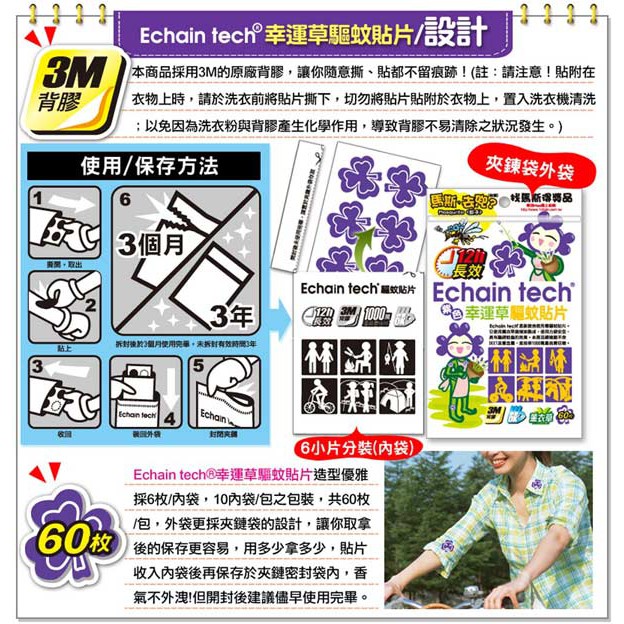 下殺1包175~ Echain tech熊出沒/小黑蚊/薰衣草12H*60枚防蚊貼片~另售熊掌防蚊液 防蚊扣啪啪扣