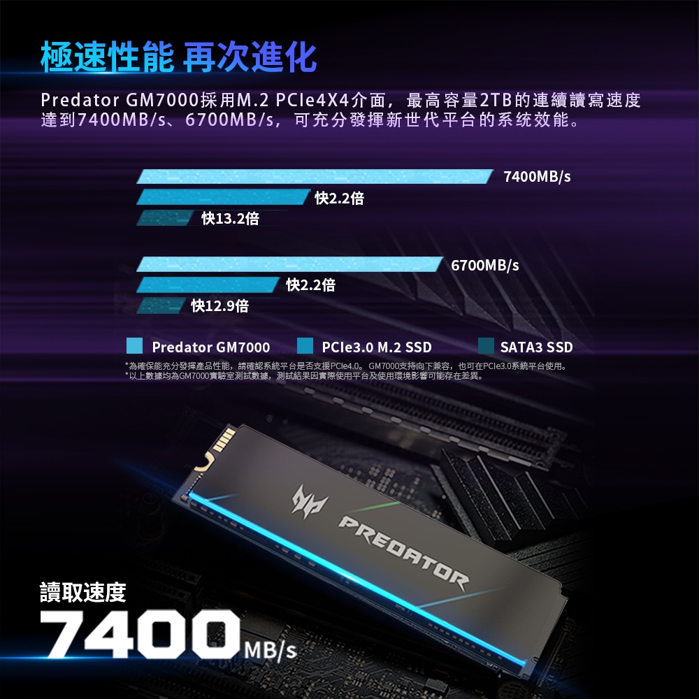 Acer Predator GM7000 M.2 2280 PCIe Gen4x4SSD固態硬碟(附散熱片)