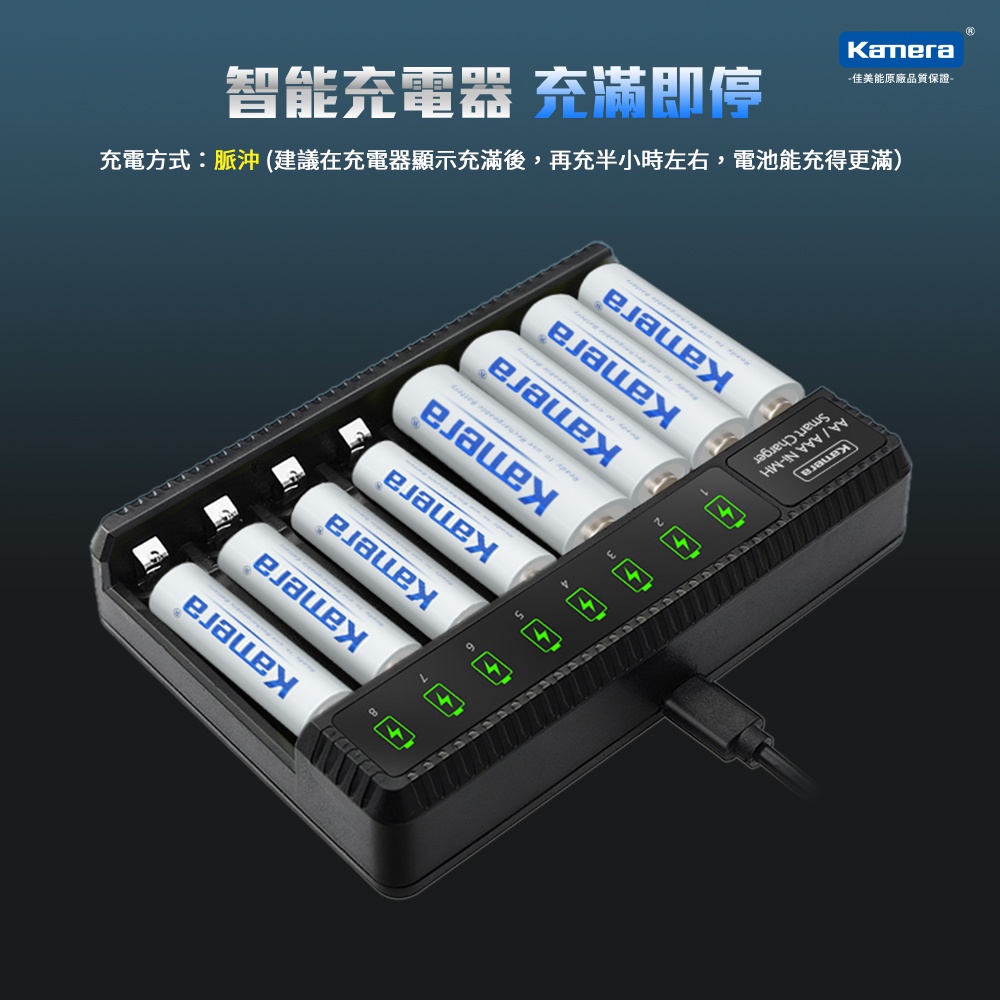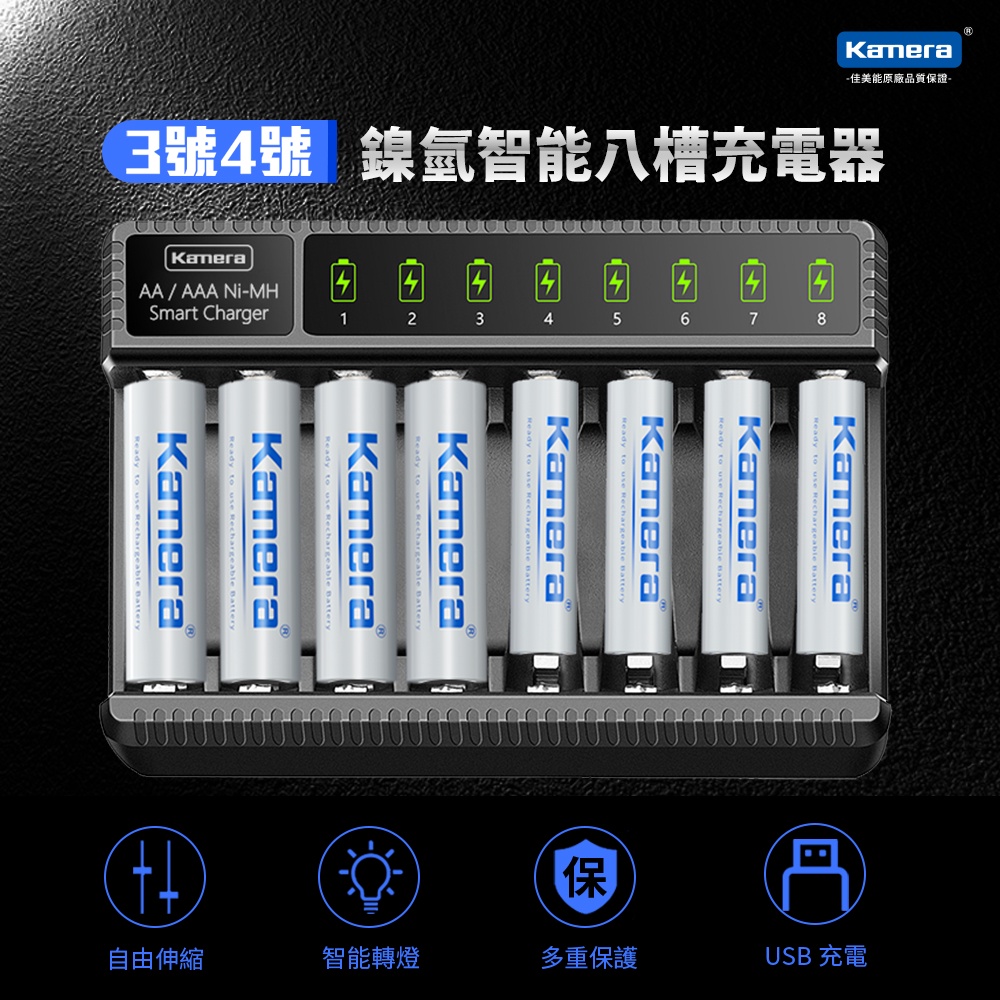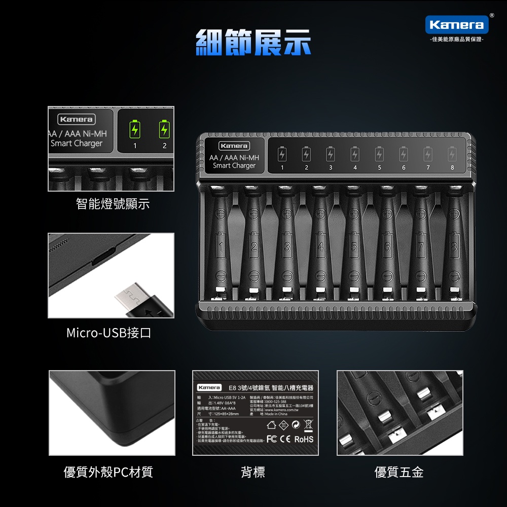 W/S🦋 Kamera 佳美能 E8 智能8槽電池充電器 3號 4號鎳氫充電器 鎳氫電池 充電器 智能充電器