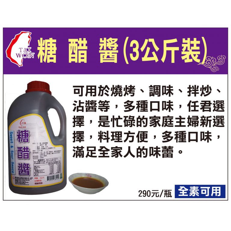 糖醋醬3kg NT$290(店到店一單限一罐)