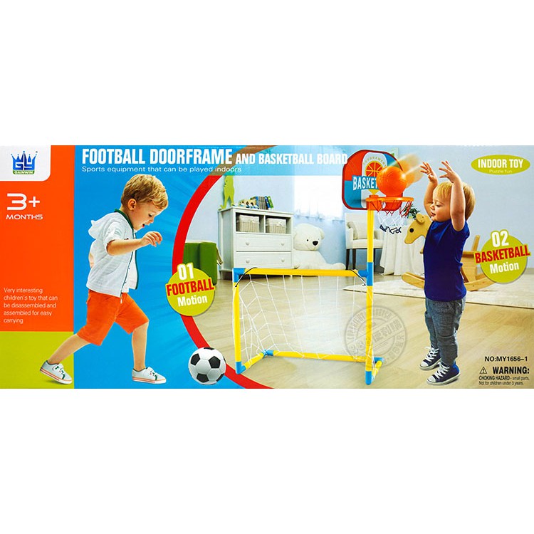 台灣出24H開發票 室內兒童足球門+籃球架組(附球+打氣筒)(16561)(無法超商取貨)運動遊戲 運動玩具 888玩具