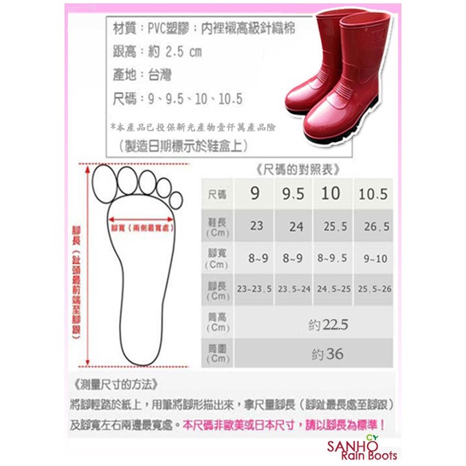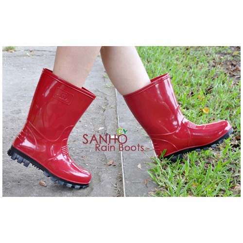 【Sanho 三和牌】MIT典雅防水半筒雨鞋/雨靴 休閒防水鞋(玫瑰紅/台灣製造 現貨)