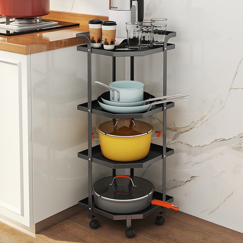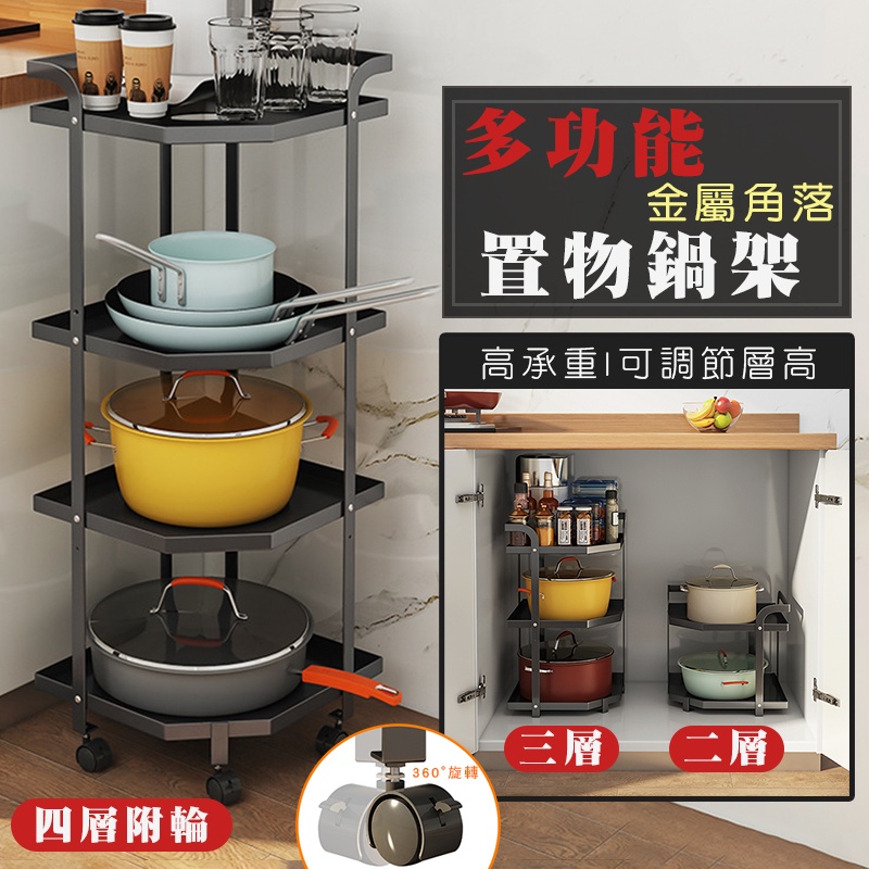 【德利生活】多功能金屬角落置物 鍋架 可調層高 萬用 收納架 鍋具收納架 廚房收納 廚房收納架 鍋子收納架 電鍋架