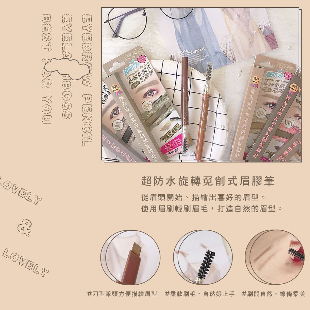 D61-D62、D91-D93 超防水旋轉免削式眉膠筆五色