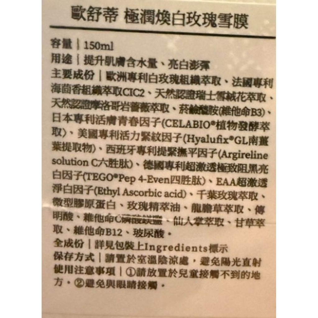 全新~歐舒蒂極潤煥白玫瑰雪膜150ml