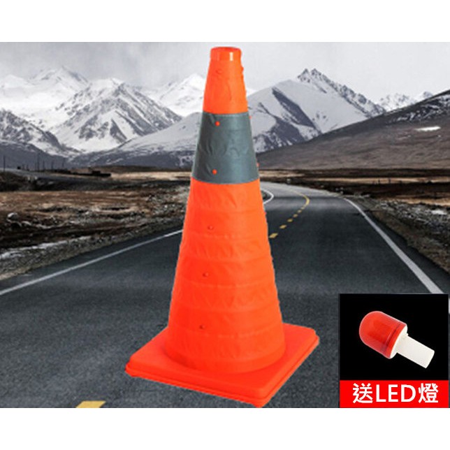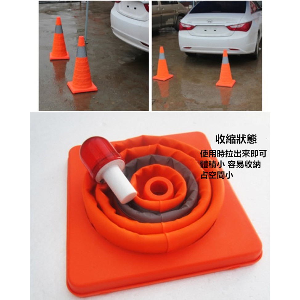 伸縮路錐 伸縮LED警示燈路錐 三角錐 免組裝 不佔空間 交通事故 車輛故障警示 收納方便 汽車必備 停車警示 工程