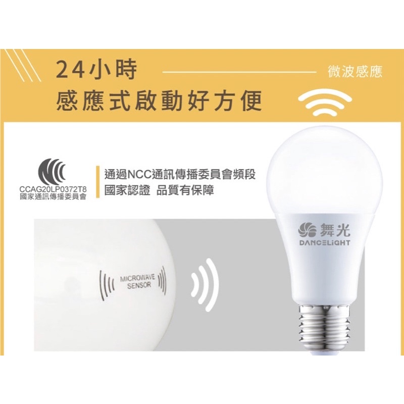 🔥舞光🔥 LED 12W 微波感應 燈泡 白光 黃光 省電節能 E27 BSMI認證 兩年保固