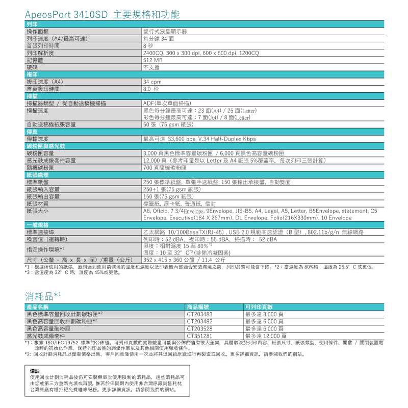 『希望購』FujiFilm富士軟片 ApeosPort 3410SD A4黑白多功能事務機 AP3410SD