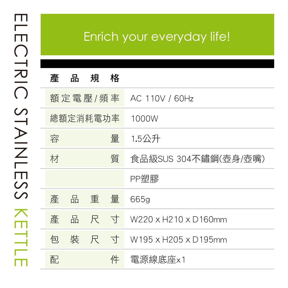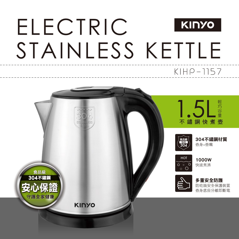 【蝦皮直營】KINYO 1.5L不鏽鋼快煮壺 1000W高功率 304不鏽鋼 快煮壺 煮水壺 現貨 原廠供貨