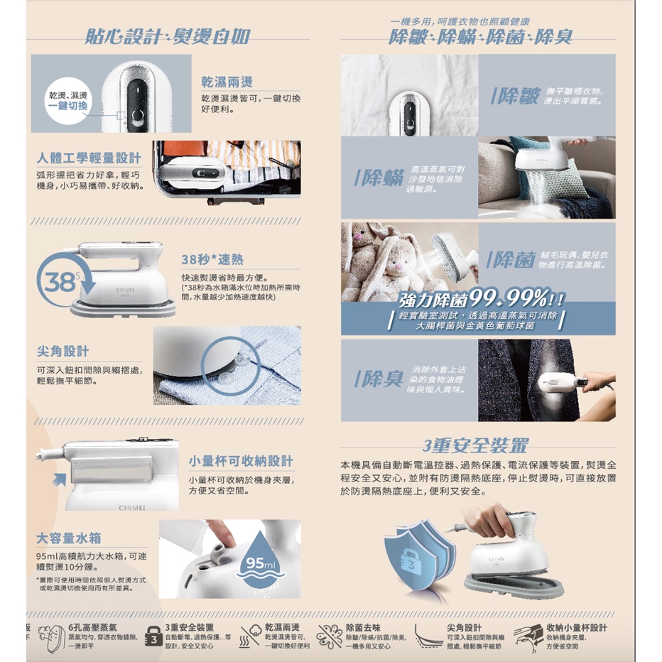 超微蒸氣 平燙掛燙 一機搞定 CHIMEI 奇美 2合1蒸氣電熨斗 ST-H095S0