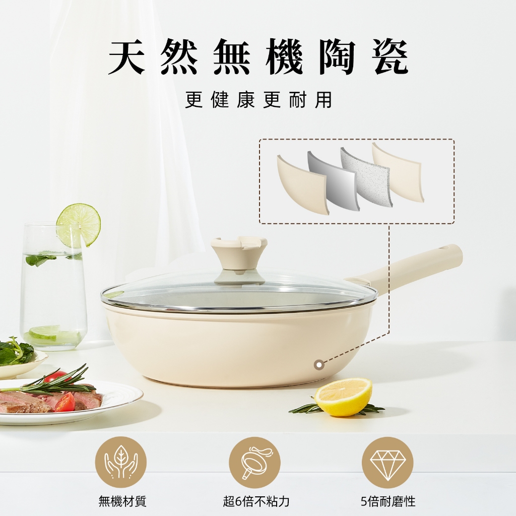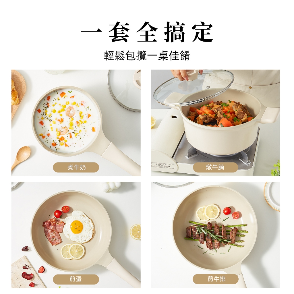 紅廚Redchef 陶瓷岩不沾鍋具組28CM煎炒鍋+24CM平底鍋+24CM湯鍋+16CM泡麵鍋IH電磁爐適用