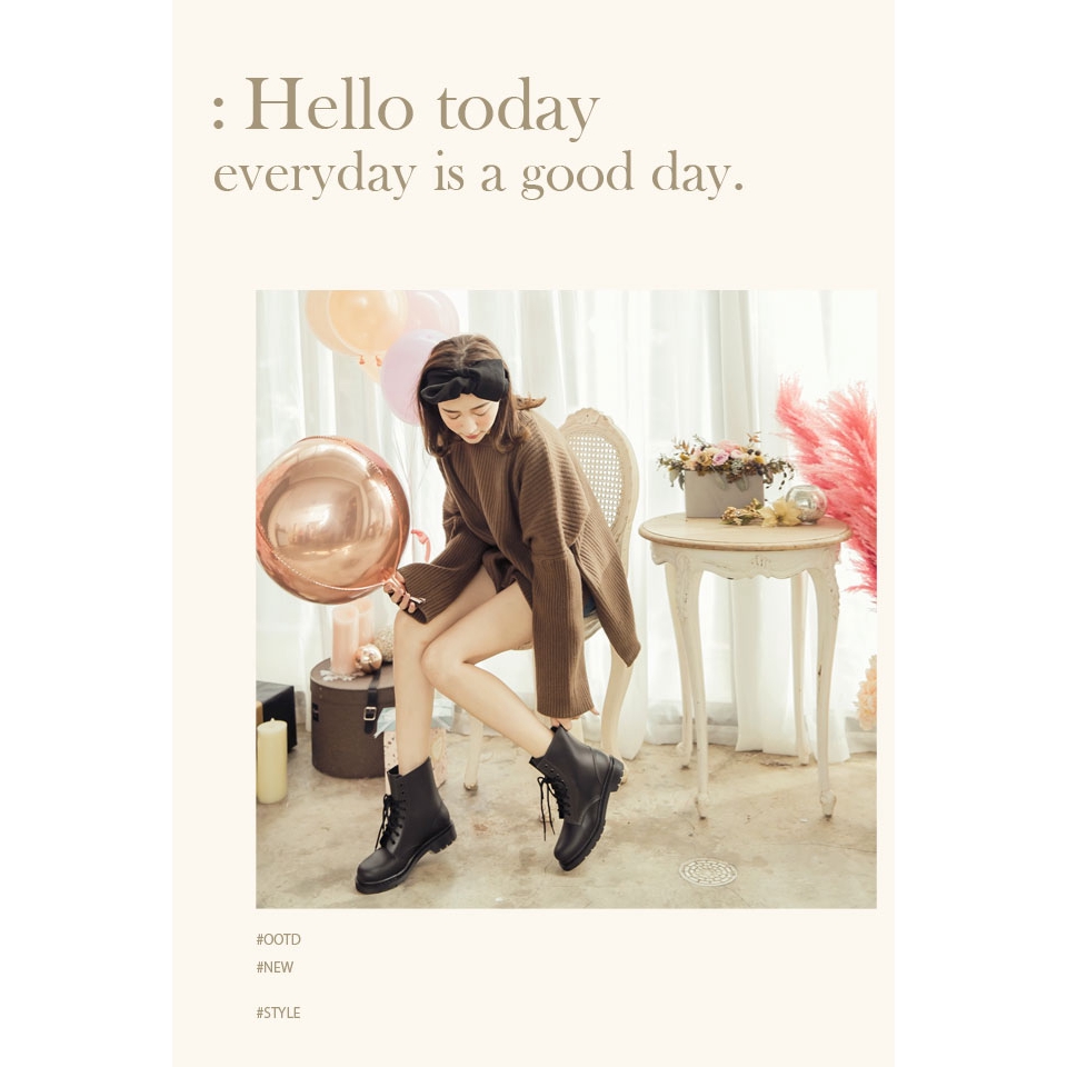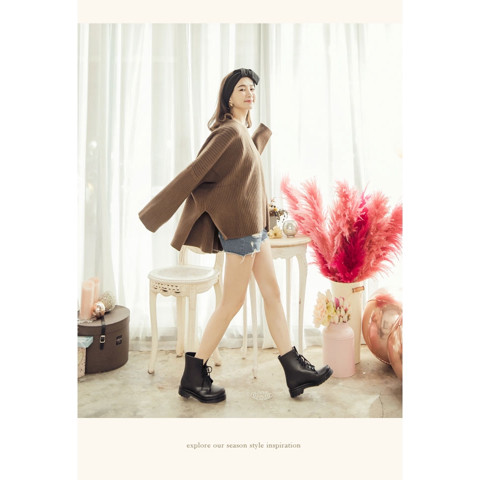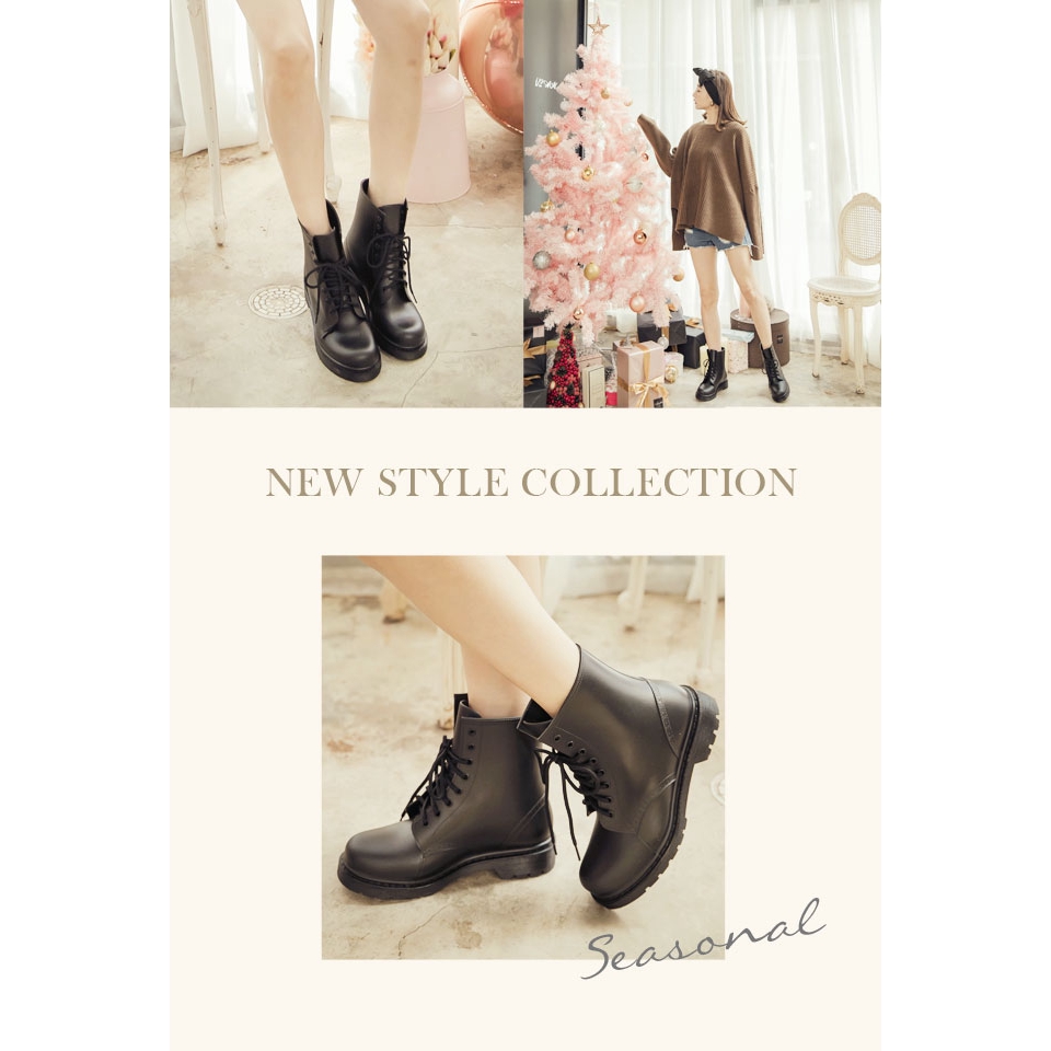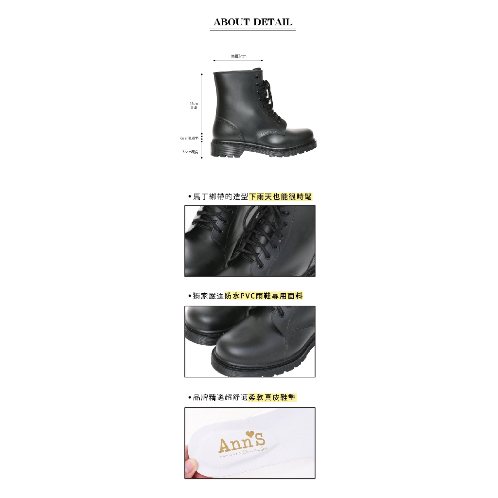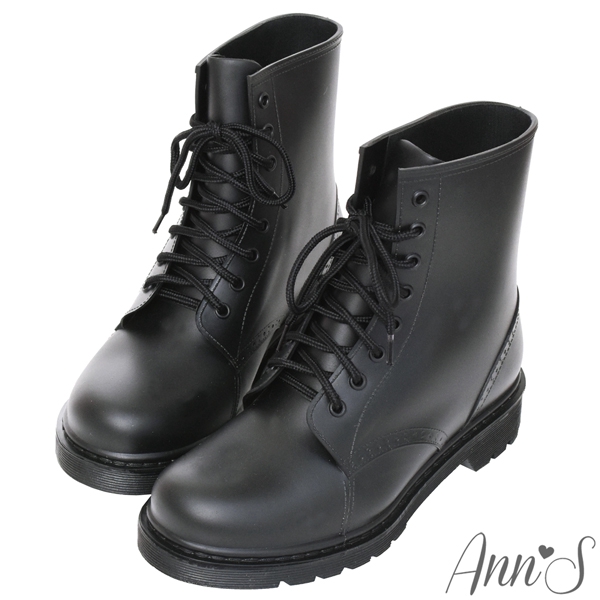 Ann’S腳不濕-馬丁造型綁帶百搭短筒雨靴-黑