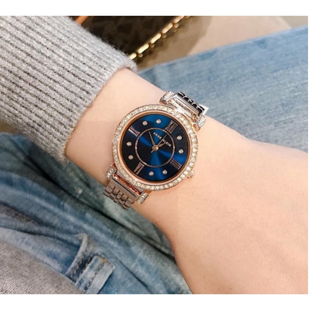 Anne Klein 玫瑰金 深藍色表面 女錶