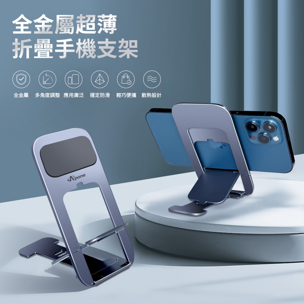 Apone 鋁合金 超薄 摺疊 手機 支架 | 桌面折疊懶人支架 手機支架 平板支架 直播手機架 隱形 攜帶 桌上 平板