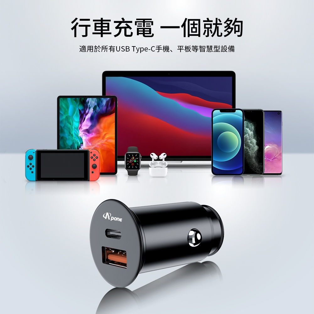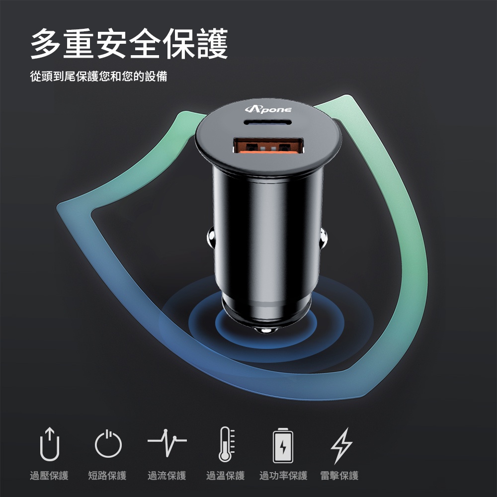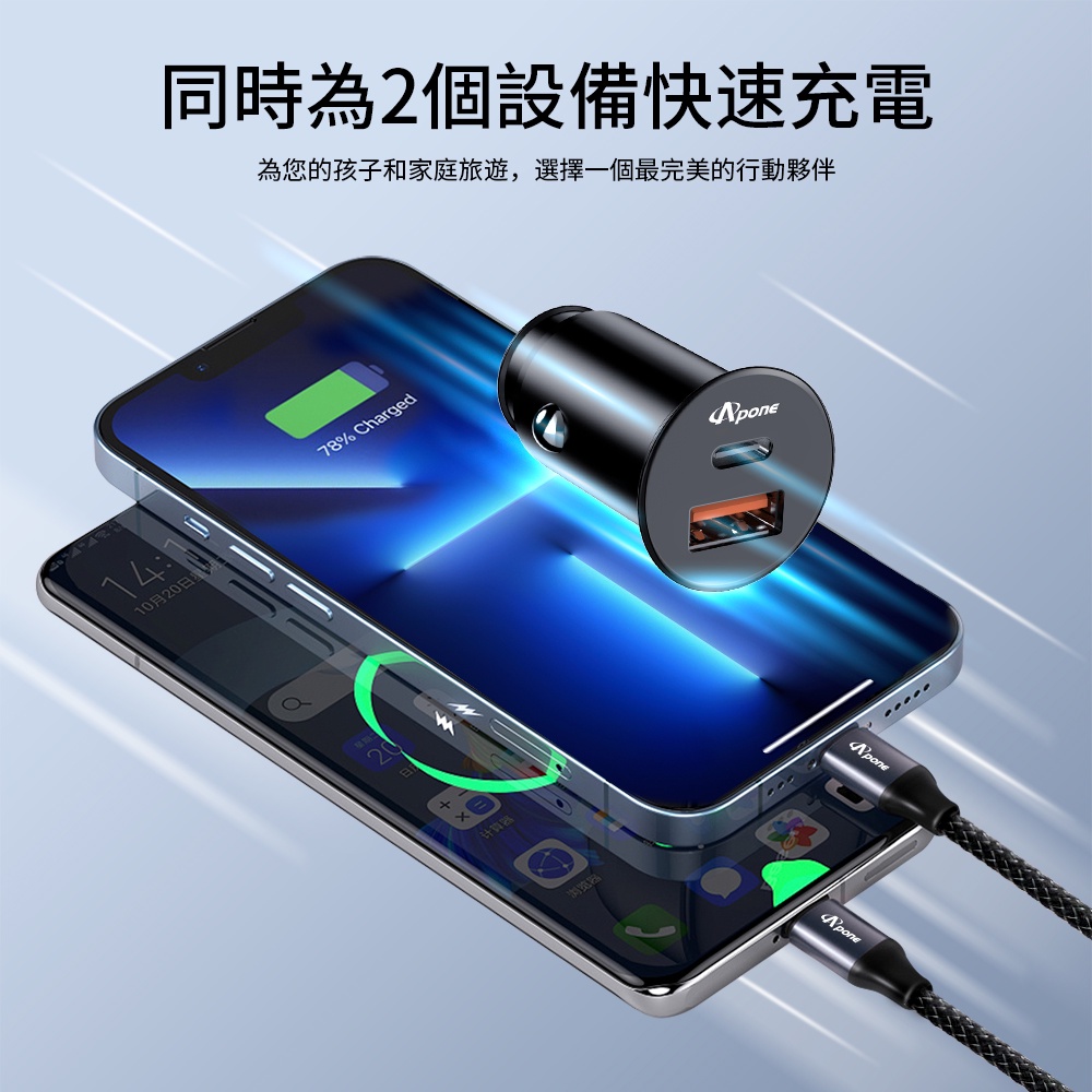 Apone 48W PD+QC 2孔 快充 車用 充電器 | 車充 USB 30W 48W 車載 隱形 汽車 點菸器
