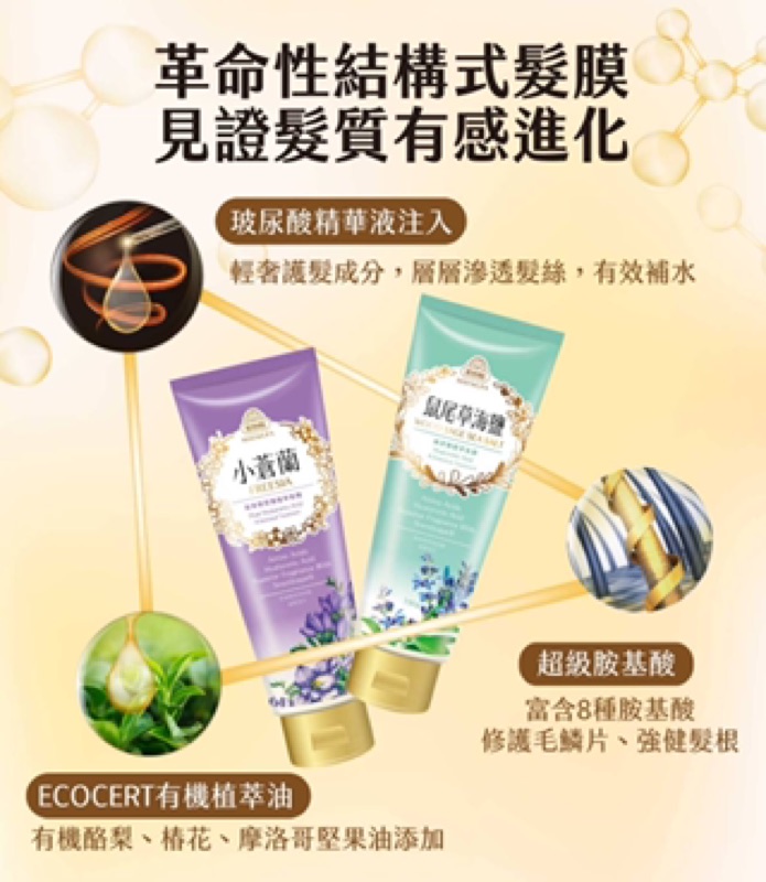 《附發票》美吾髮玻尿酸植萃髮膜 [鼠尾草海鹽/小蒼蘭] (玻尿酸胺基酸修護髮絲) 60秒結構瞬護髮