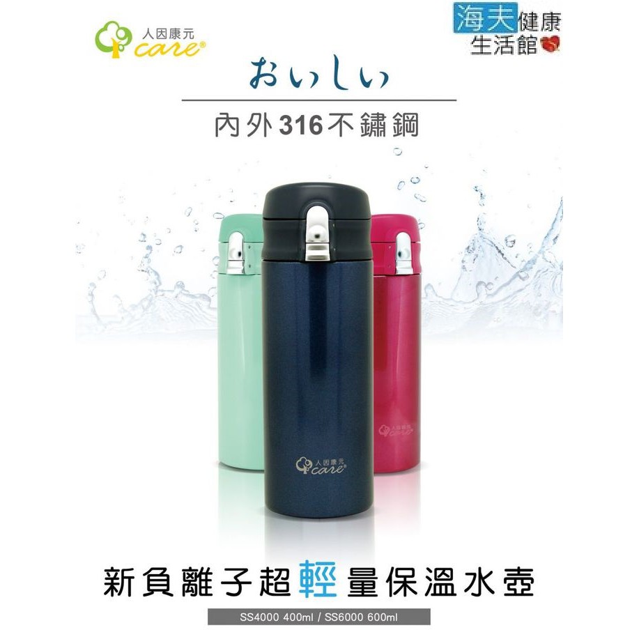 【人因康元x海夫】新負離子 超輕量 316不鏽鋼 保溫水壺 400ml (SS4000)