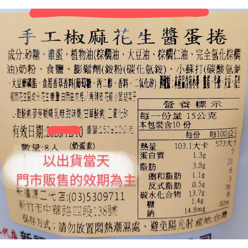 【門市貨+免運】新福源 🥜花生醬蛋捲 芝麻醬蛋捲 / 花生蛋捲 芝麻蛋捲 花生醬
