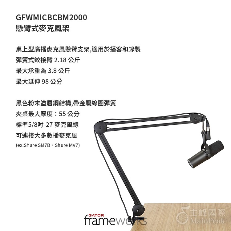 【恩心樂器】Gator Frameworks GFW-MICBCBM2000 夾桌懸臂式麥克風架 桌上型 麥克風架
