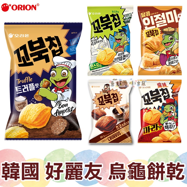 好麗友 烏龜玉米濃湯味 麻辣風味 韓國烤麻糬風味 80g 【蘇珊小姐】韓國烏龜餅乾 ORION 烏龜玉米脆餅
