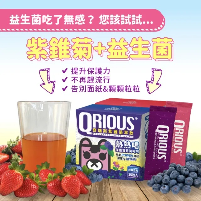 【樂森藥局】🔴近效出清🔴 QRIOUS 奇瑞斯 紫錐菊 萃飲 PLUS 感冒熱飲 花果飲 7包/15包 益生菌