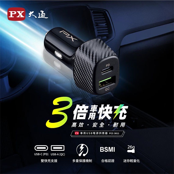 【3CTOWN】含稅 PX大通 PCC-3811 車用USB電源供應器 USB車充器 車用充電器