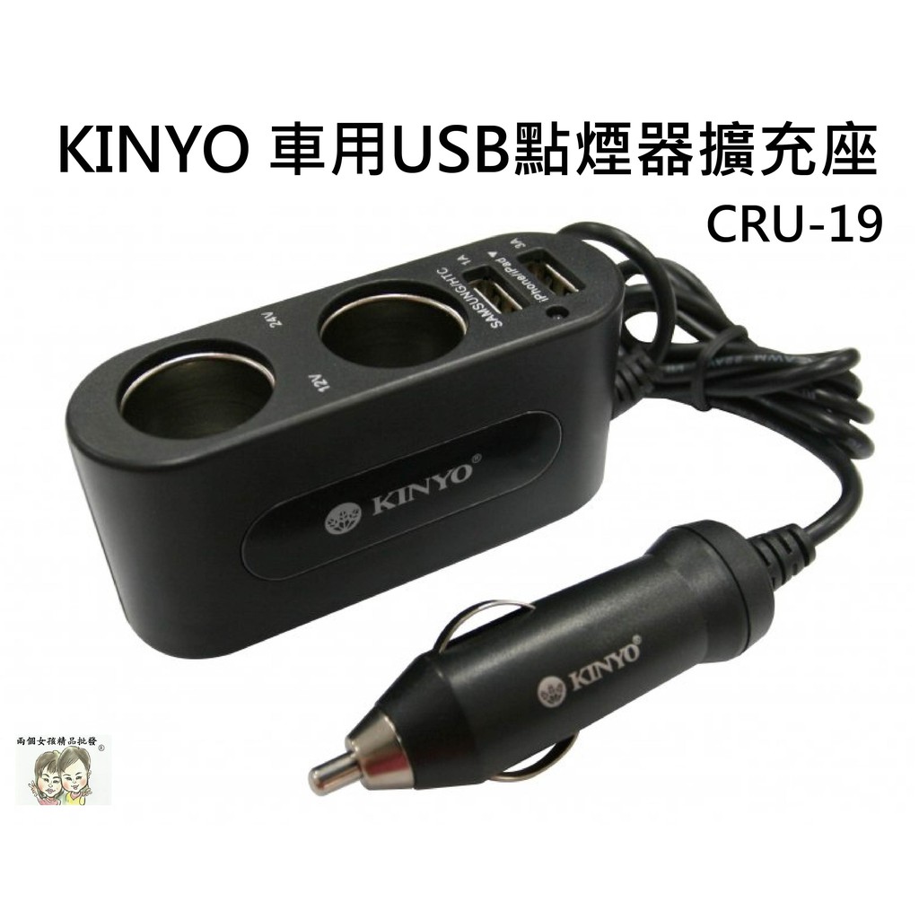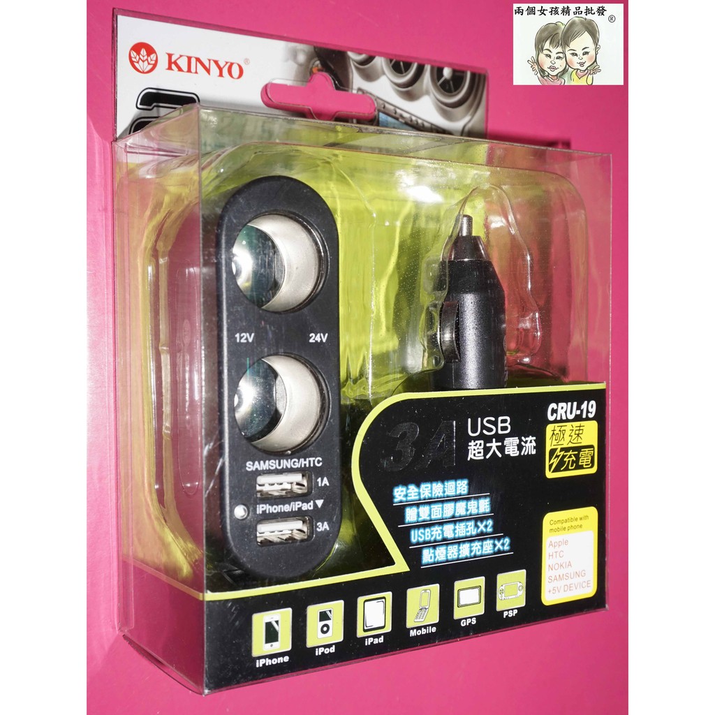 現貨 36小時內出貨 KINYO 盒裝 CRU-19 車用 點煙器 擴充座 超大電流3A 2點煙器 2USB 車充 *