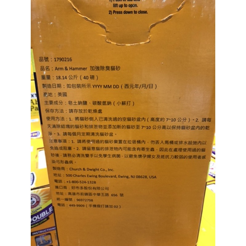 Arm&Hammer加強除臭貓砂18kg原箱)