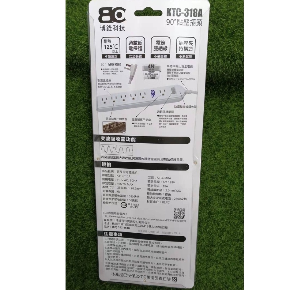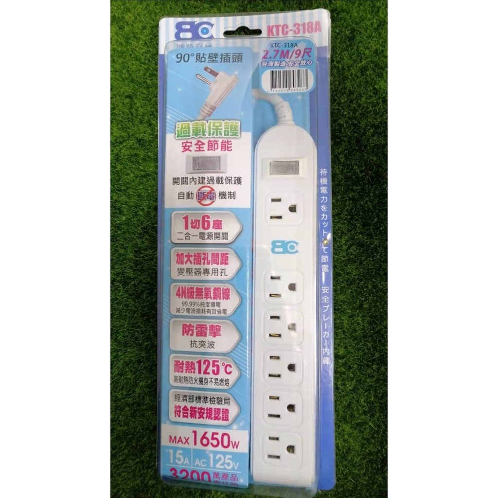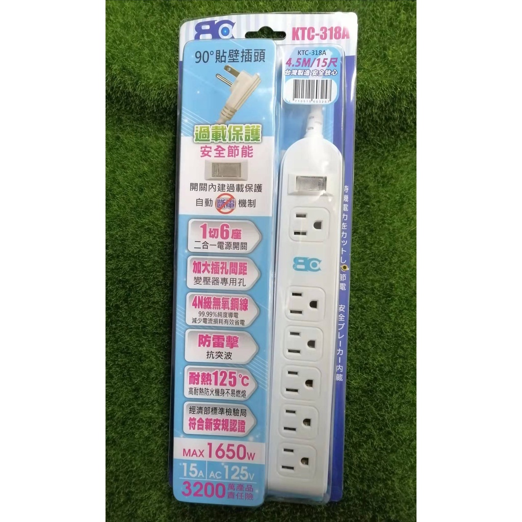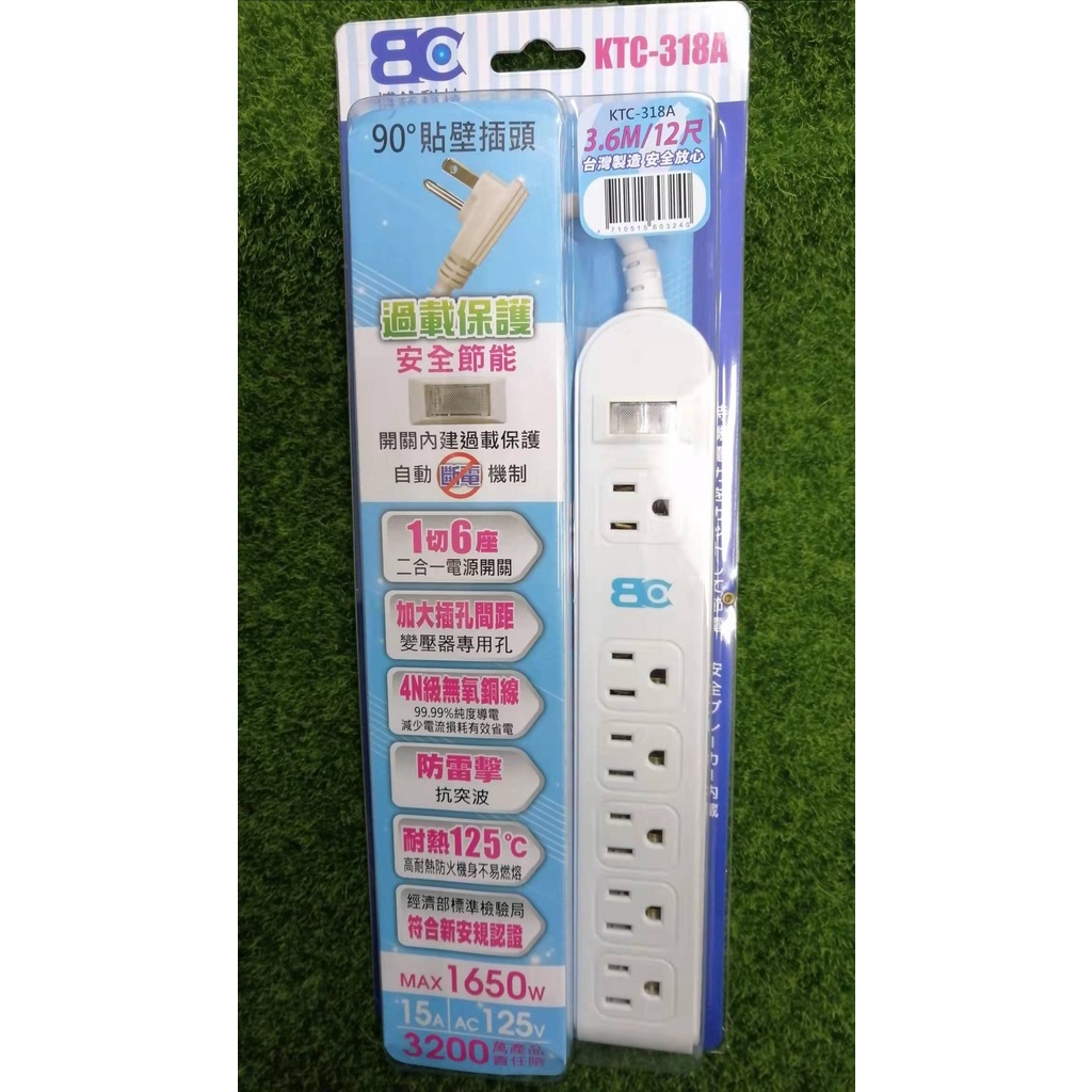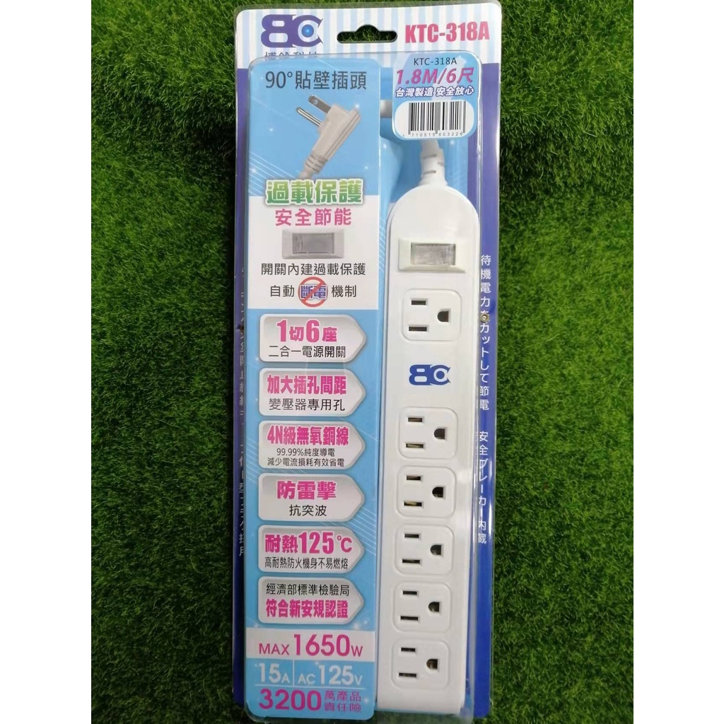 BC博銓科技 1切六座3孔 過載斷電保護 延長線 KTC-318A 6尺/ 9尺 /12尺 /15尺
