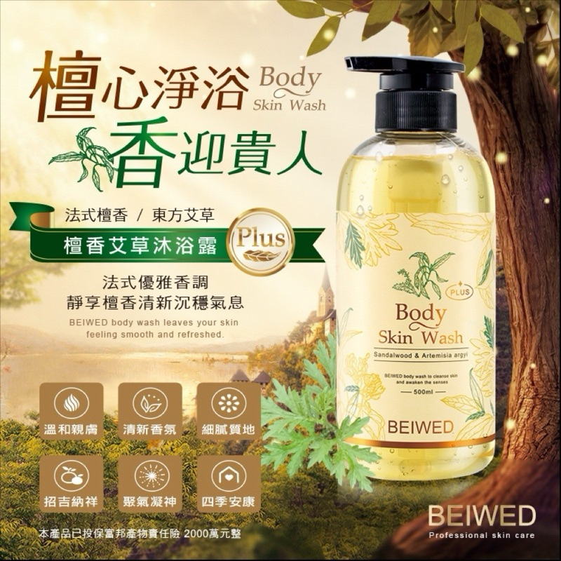 BEIWED 檀香艾草沐浴露 Plus -500ml 現貨+蝦皮代開發票 清新高雅香氛、好洗好冲、洗後不回乾、不緊繃