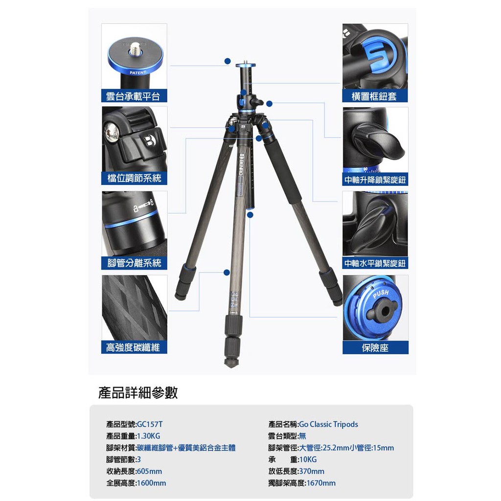 BENRO百諾 GC157T 碳纖維多功能三腳架 SystemGO系列 GoClassic