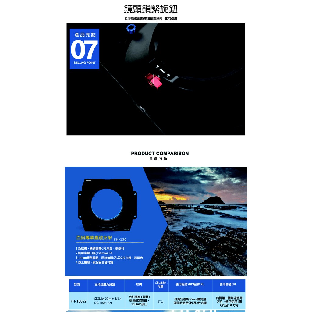 BENRO 百諾 FH-150 S2 濾鏡支架 150mm Sigma 20mm f/1.4 適用 相機專家 [公司貨]