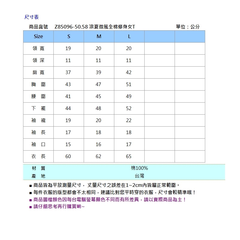 BIG TRAIN 涼夏微風全棉修身女T-Z85096-50&58