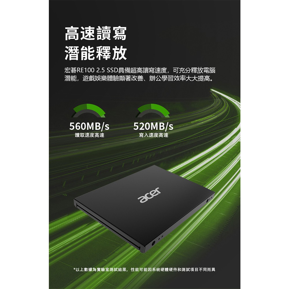 Acer RE100 256GB 512GB 1TB SATA 2.5” SSD固態硬碟