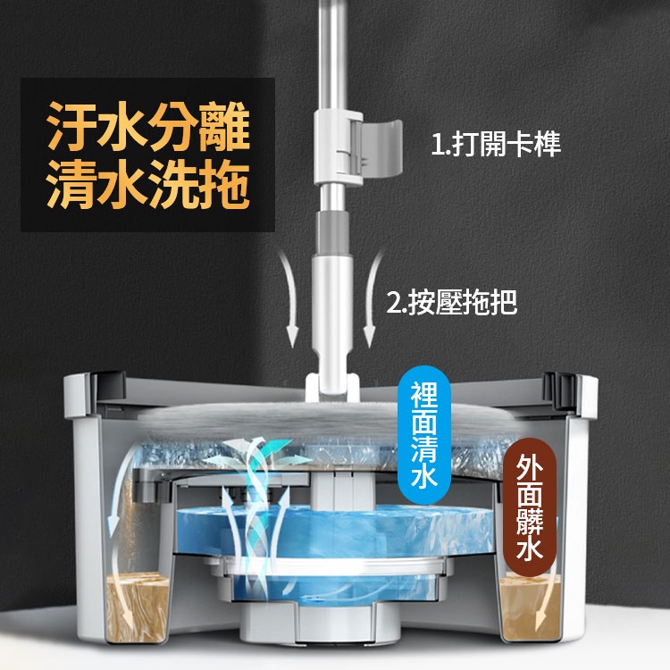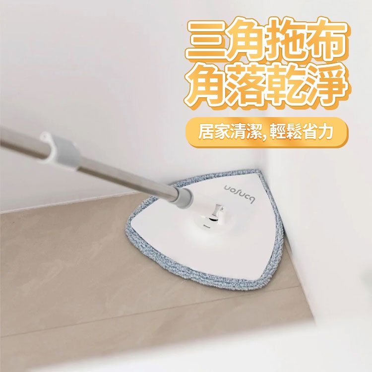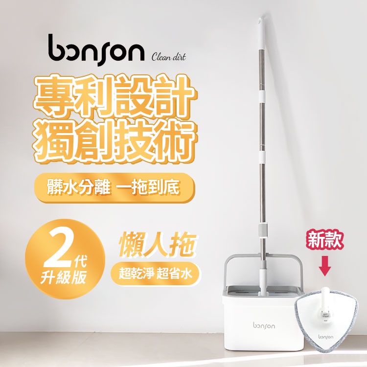 【bonson】極省水平板拖把組 三角+圓款 2代升級版 平板拖把 免手洗拖把 手壓旋轉拖把 獨家滾刷汙水分離 台灣免運