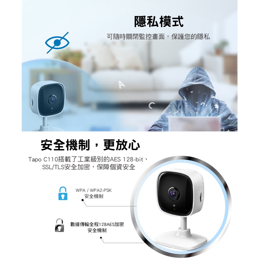 免運【現貨熱銷】TP-Link Tapo C110 wifi攝影機 網路監視器 Wi-Fi 攝影機 遠端監控 夜視高畫質