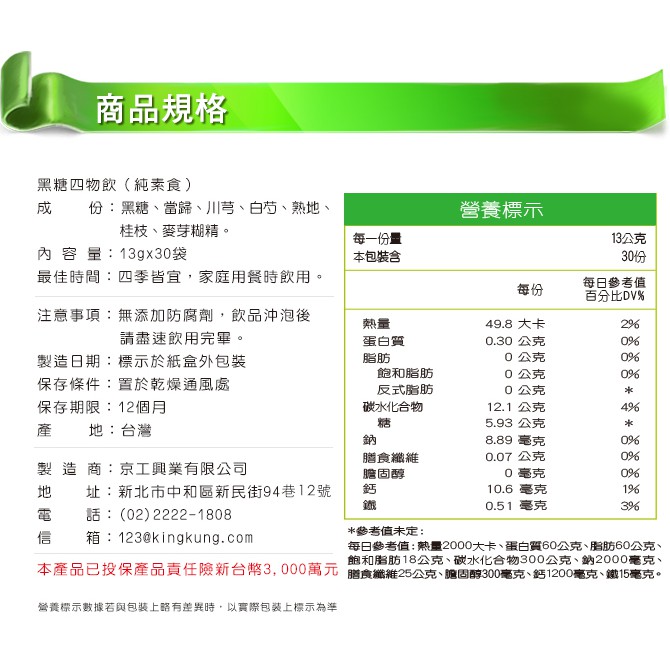 【京工】黑糖四物飲 (30入) - 京工蔬菜湯養生館