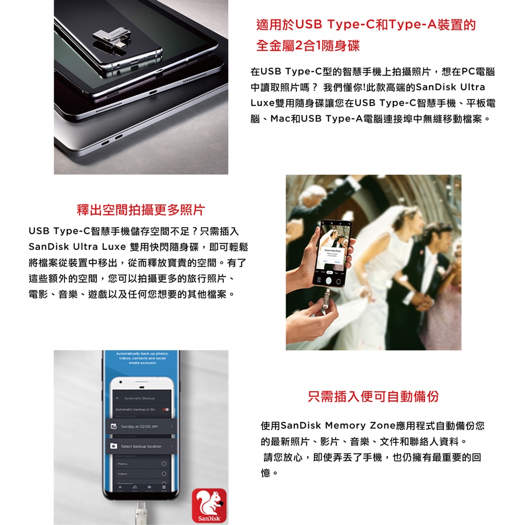 全金屬 SanDisk Ultra Luxe Type C OTG 雙用隨身碟 1TB 512G 256G SDDDC4