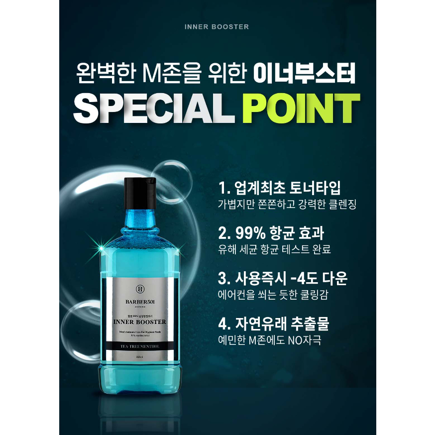 Barber501 INNER BOOSTER 男性衛生洗液/男性洗液/男性護理/男性衛生洗液(男士私密洗液用於男士零件