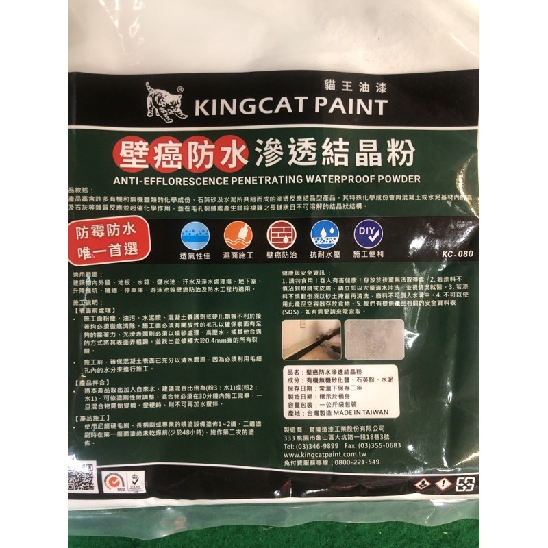 含税 KC-080 滲透結晶矽酸質防水粉 壁癌防水 1KG 壁癌粉 矽酸結晶粉 KINGCAT 貓王