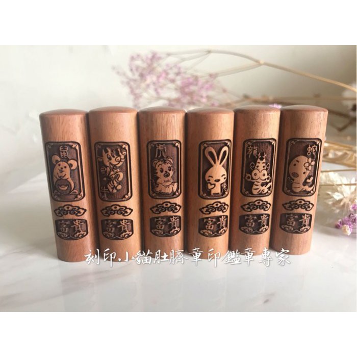 ~刻印小貓~高級6分六分紫檀木十二生肖/12生肖組開運印章/印鑑(含刻印)方圓章任選一