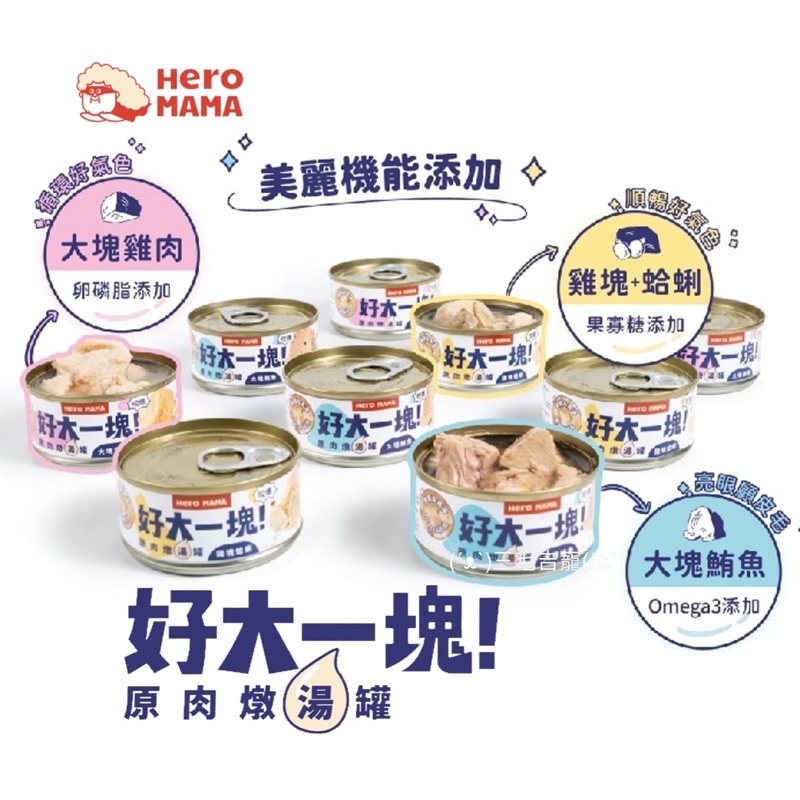 大口肉肉😍🤤•HeroMama•好大一塊 •原肉燉湯罐 厚實原肉 貓罐頭 狗罐頭 副食罐 犬貓專用 三毛吉寵