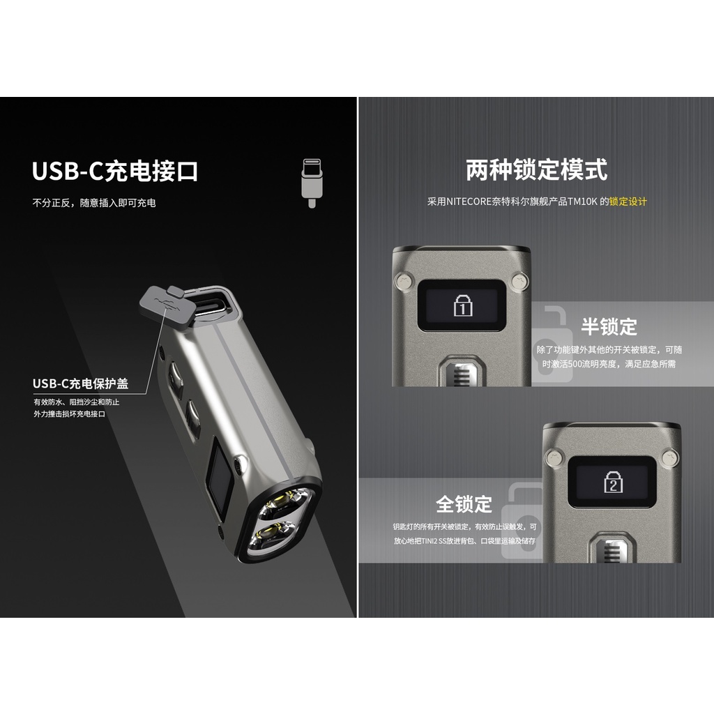 【電筒發燒友】NITECORE TINI2 Ti 鈦合金 TINI2 SS 不銹鋼 500流明 鑰匙燈 USB-C充電
