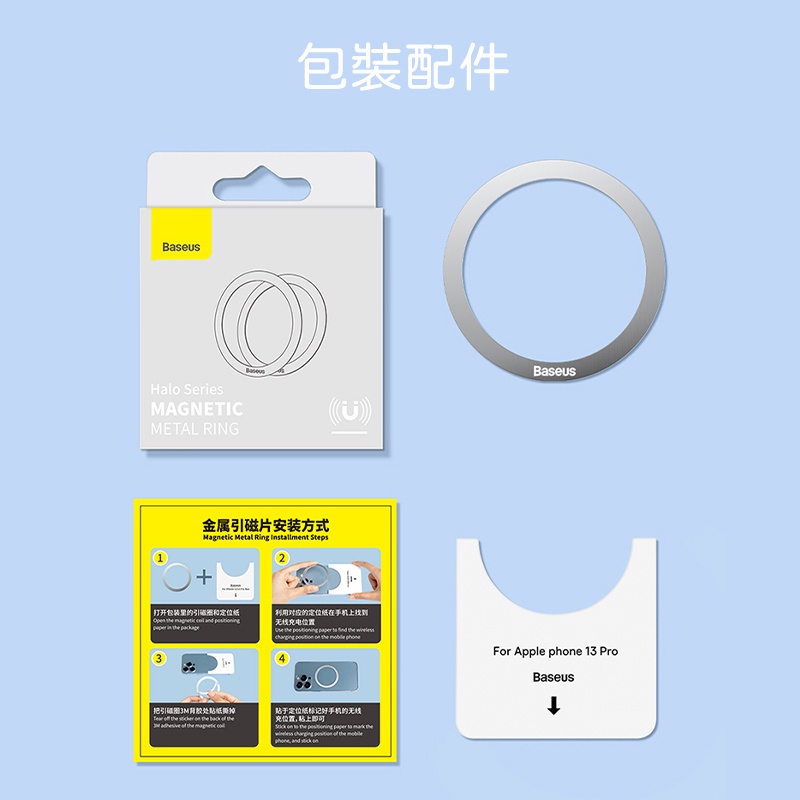 Baseus倍思 iPhone磁環 Magsafe金屬引磁片不銹鋼引磁環 磁吸貼 引磁貼 強磁貼片 強力引磁圈 引磁鐵環