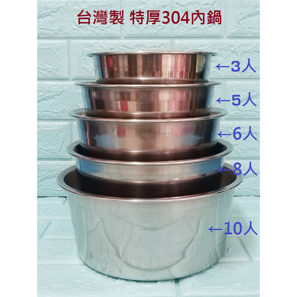 亞拉百貨 台灣製 特厚304不鏽鋼內鍋 湯鍋 電鍋內鍋 燉鍋 料理鍋 萬能鍋 萬用鍋 特厚材質不黑鍋